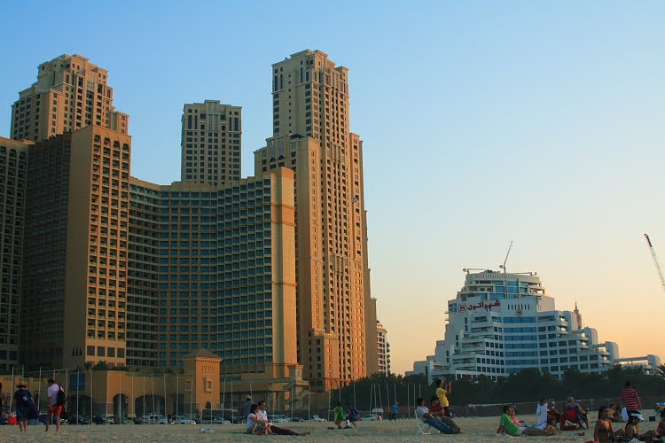 The Burj Dubai (Dubai Tower) and Burj Al Arab (Tower of the Arabs) -- maybe we'll get closer some other time.